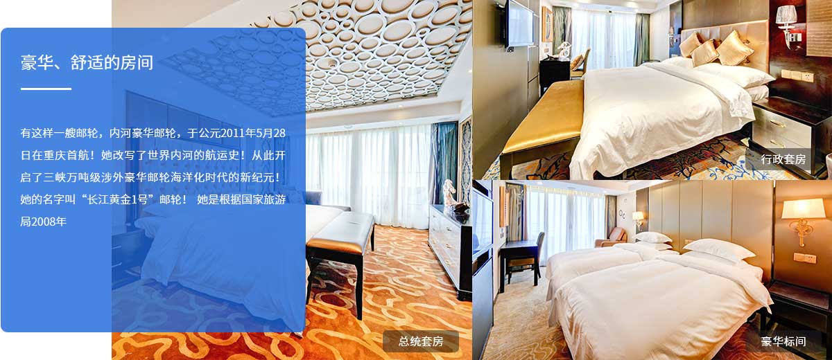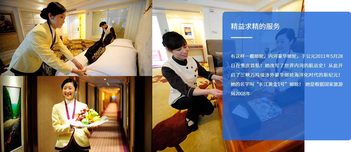 公司按照“高端定位、市场运作、分批建造、错位经营”的总体思路,计划3年内投资建造“长江黄金”系列邮轮,致力于长江三峡旅游品质的提升和高端客源市场的开发。“长江黄金”系列邮轮设计长度136~149.98米,型宽19.6~24米,总吨位1.2~1.5万吨,载客量350~570人,拟开辟重庆至宜昌、武汉、南京、上海等航线。公司始终坚持用心塑造、用心服务,彰显卓越、勇于超越的企业文化;坚持将邮轮作为旅游目的地来打造;坚持提升品质,把细节做到极致;坚持以市场为导向,打造一支高素质、高效率的人才队伍;坚持品牌营销、精细管理,树立长江游轮行业标杆。品长江黄金邮轮,赏三峡诗画风光,享尊贵典雅人生。长江黄金邮轮必将开启长江游轮新时代,掀开三峡旅游新篇章。